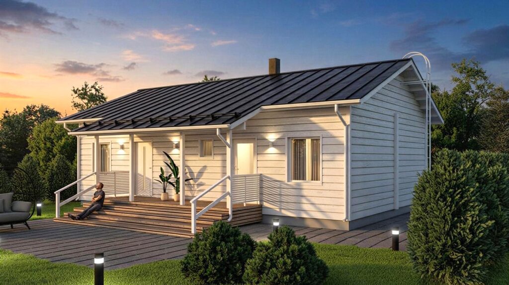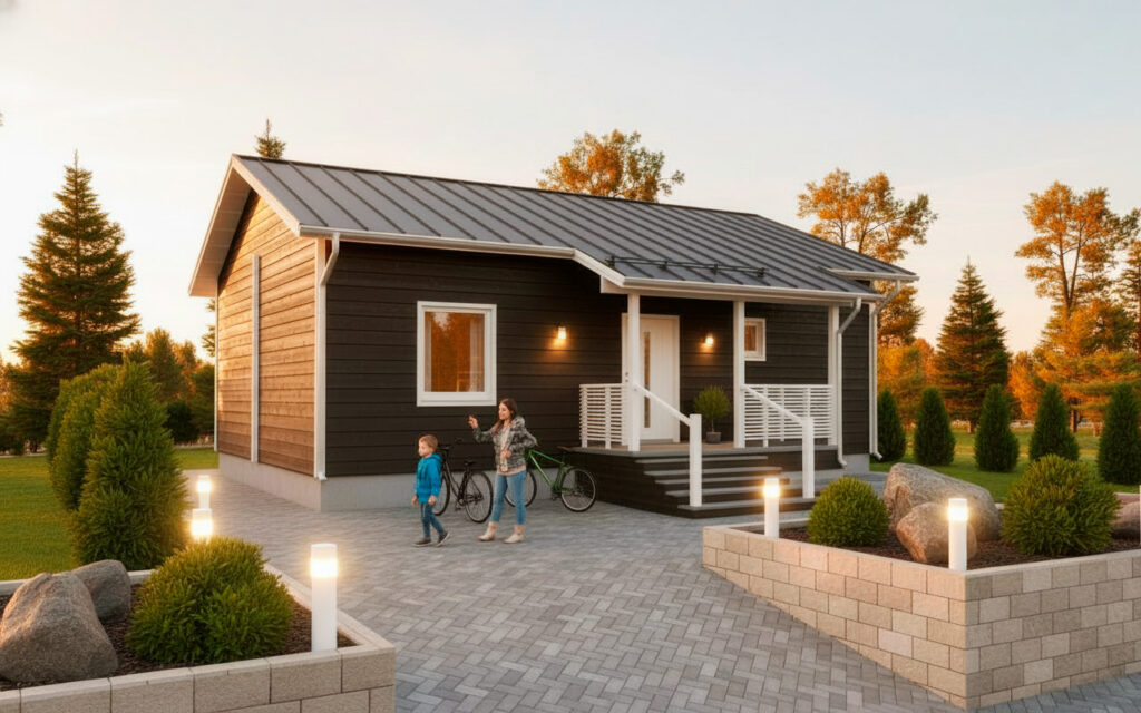 Loma-Kaakamo 1 MH, ET, VH, KHH/KPH/S, OH/KEITTIÖ, WC Kaakamo on mallistomme odotettu pieni tulokas. Täydellinen minitalo lomakäyttöön niin yksin elävälle, pariskunnalle kuin pienelle perheellekin. Säilytystilaa löytyy pienen talon mittoihin nähden runsaasti: makuuhuoneen ja eteisen kiinteät kaapistot sekä vaatehuone/varasto makuuhuoneen yhteydessä. Toimivat kodinhoitohuone- ja pesutilat kompaktein neliöin. Keittiö on sijoitettu fiksusti etäälle makuuhuoneesta. Valoisa olohuone on […]