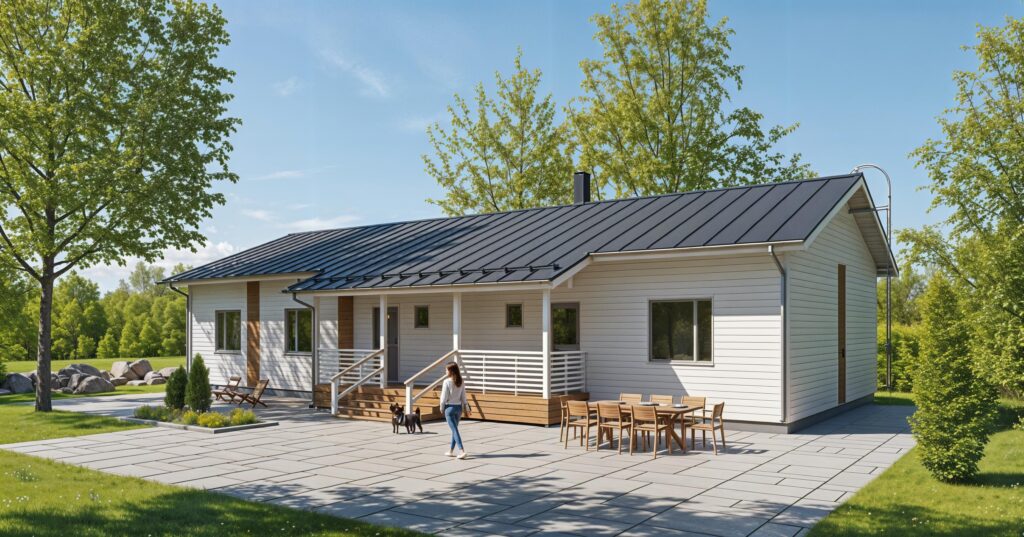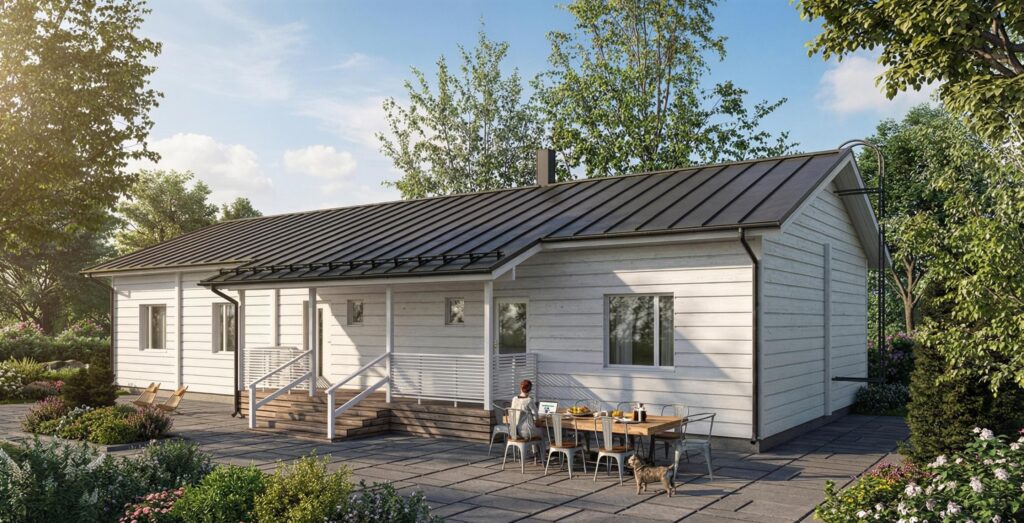 Koskenranta 149 ES 5MH, OH, K, ET, VH/VAR, KHH, WC, PH, S Koskenranta ES on viidellä makuuhuoneella varustettu puutalo, jossa valo pääsee kulkemaan kauniisti läpi talon olohuoneen ja keittiön kautta. Olohuone ja keittiö ovat rinnakkain talon keskellä. Talon pienin makuuhuone/työhuone on sijoitettu etäämmälle yleisistä tiloista. Tällainen pohjaratkaisu mahdollistaa keskittymisen esimerkiksi etätyöhön. Suunnittele ilmansuuntien ja pihan […]
