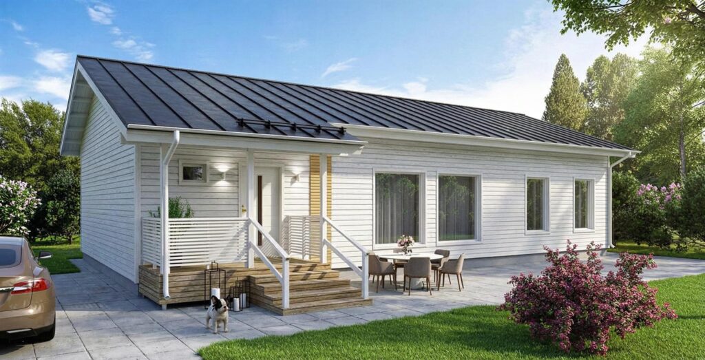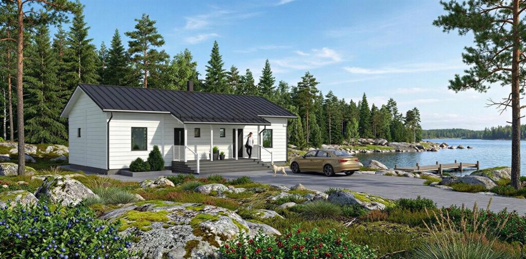 Kaakamo 67 1 MH, ET, VH, KHH/KPH/S, OH/KEITTIÖ, WC Kaakamo on mallistomme odotettu pieni tulokas. Täydellinen minitalo esimerkiksi yksin elävälle, pariskunnalle tai lomakäyttöön pienelle perheellekin. Säilytystilaa löytyy pienen talon mittoihin nähden runsaasti: makuuhuoneen ja eteisen kiinteät kaapistot sekä vaatehuone/varasto makuuhuoneen yhteydessä. Toimivat kodinhoitohuone- ja pesutilat kompaktein neliöin. Keittiö on sijoitettu fiksusti etäälle makuuhuoneesta. Valoisa olohuone […]