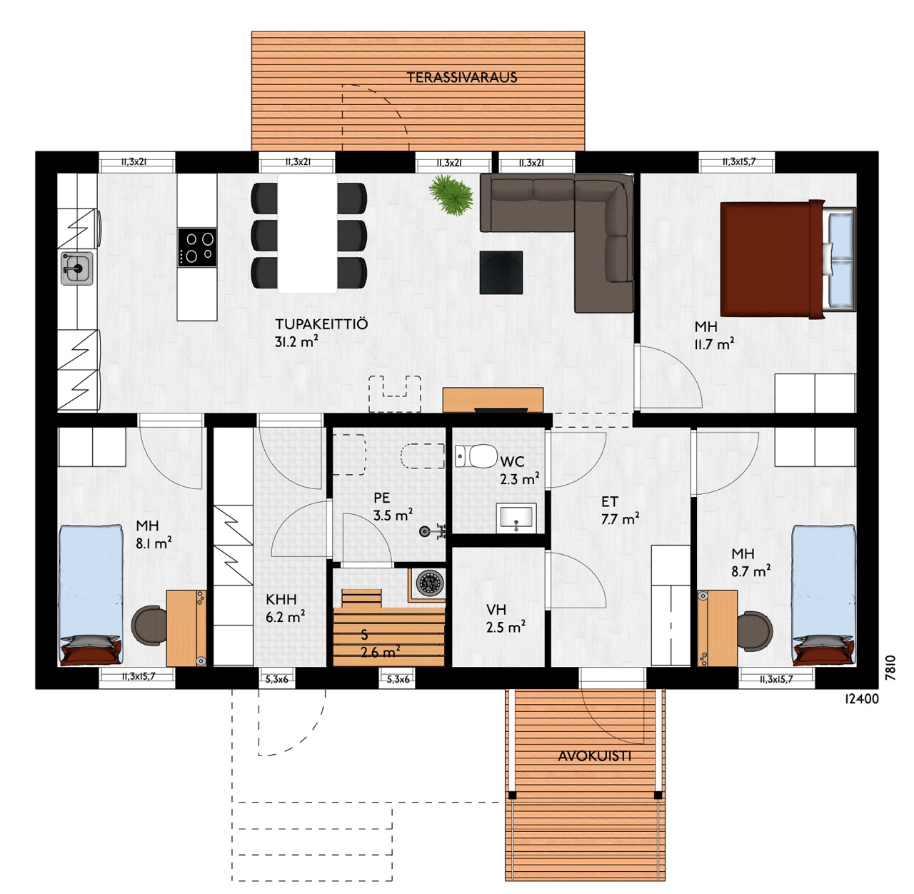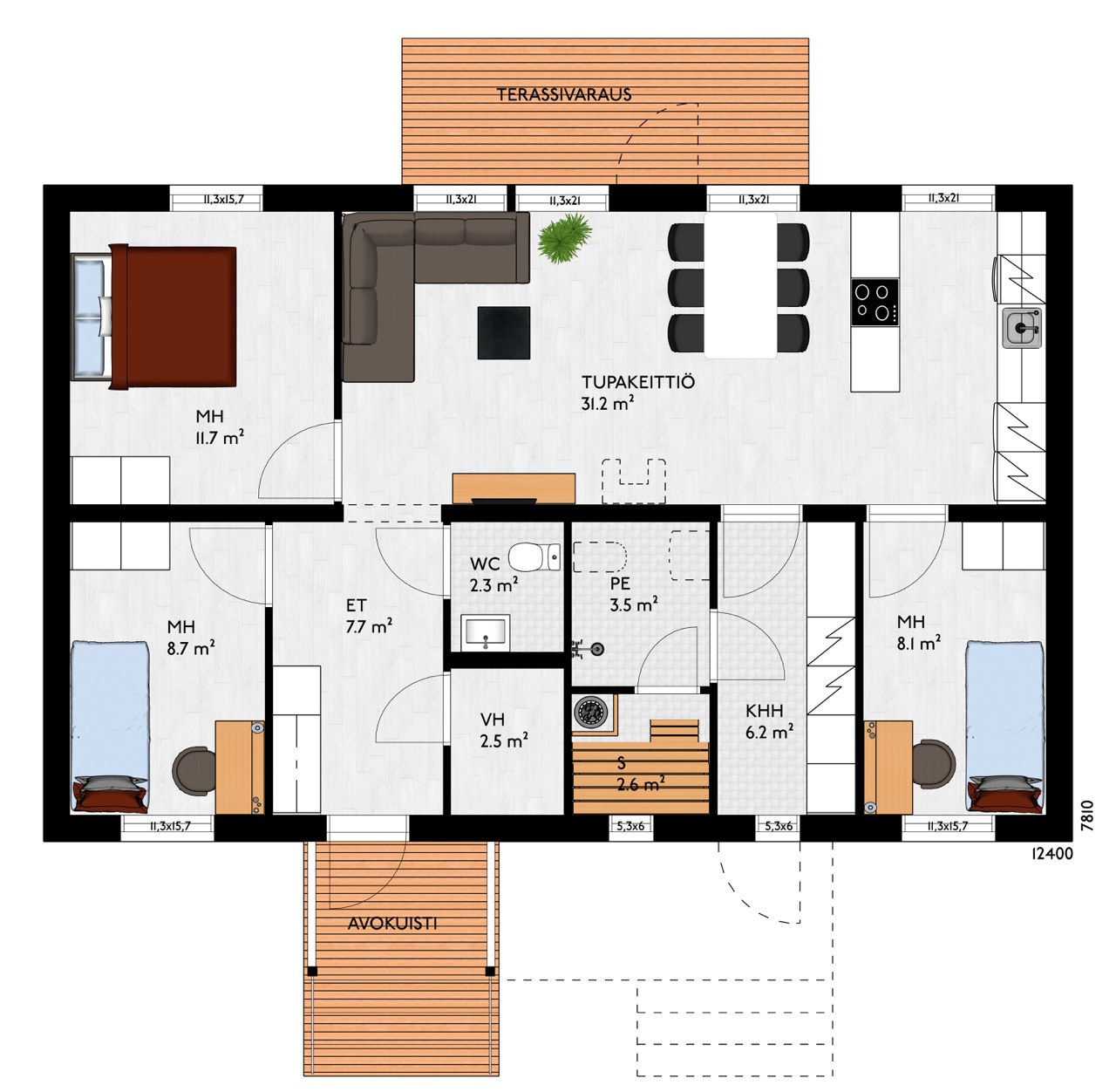 3MH, TUPAKEITTIÖ, WC, PH, S, KHH, VH