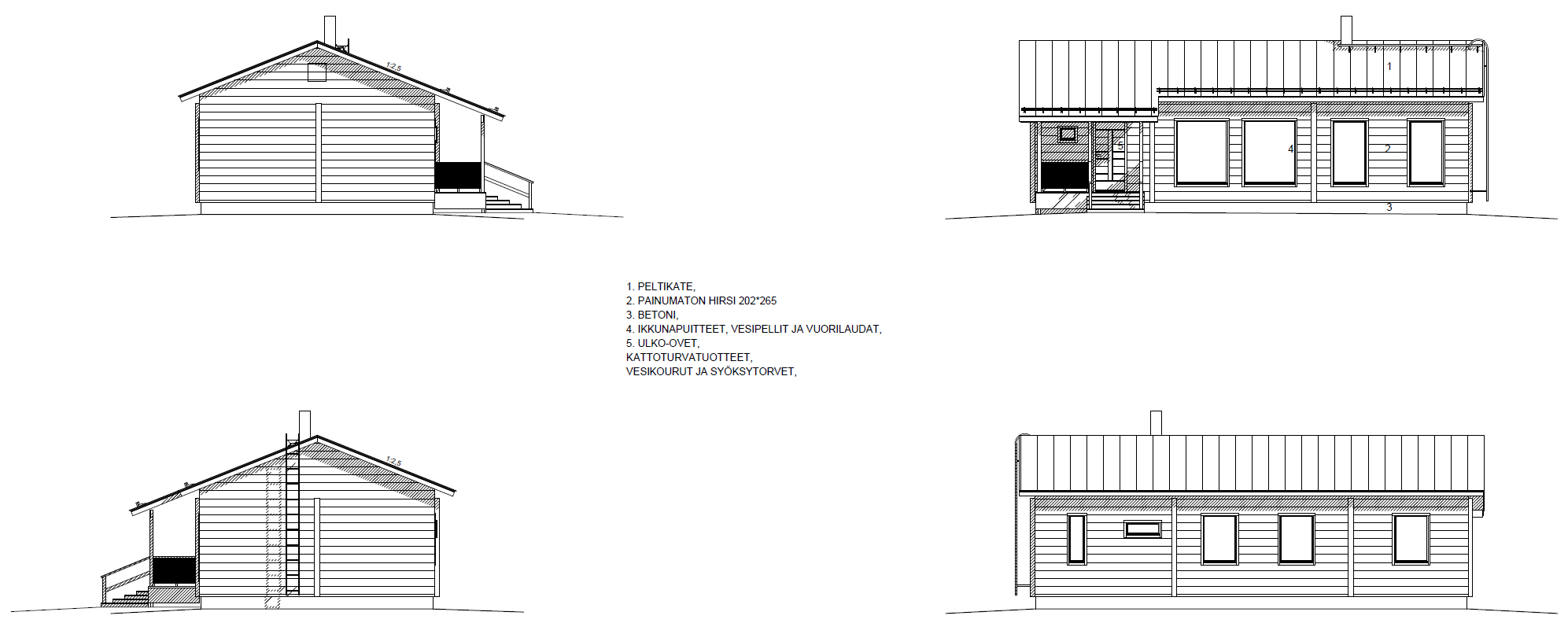 Kodinhoitohuoneesta ovi lisättävissä talon päätyyn. Katettu terassi myös saatavissa.