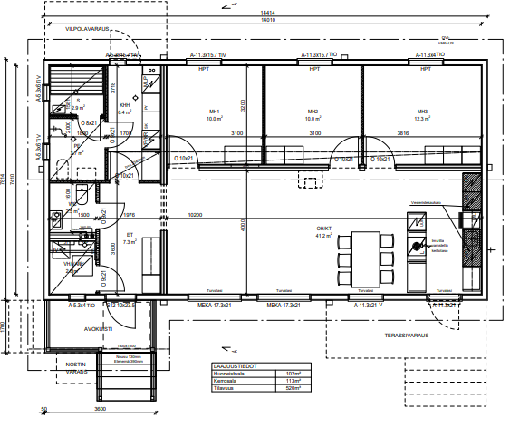Huoneistoala 102 m², kerrosala 113 m²