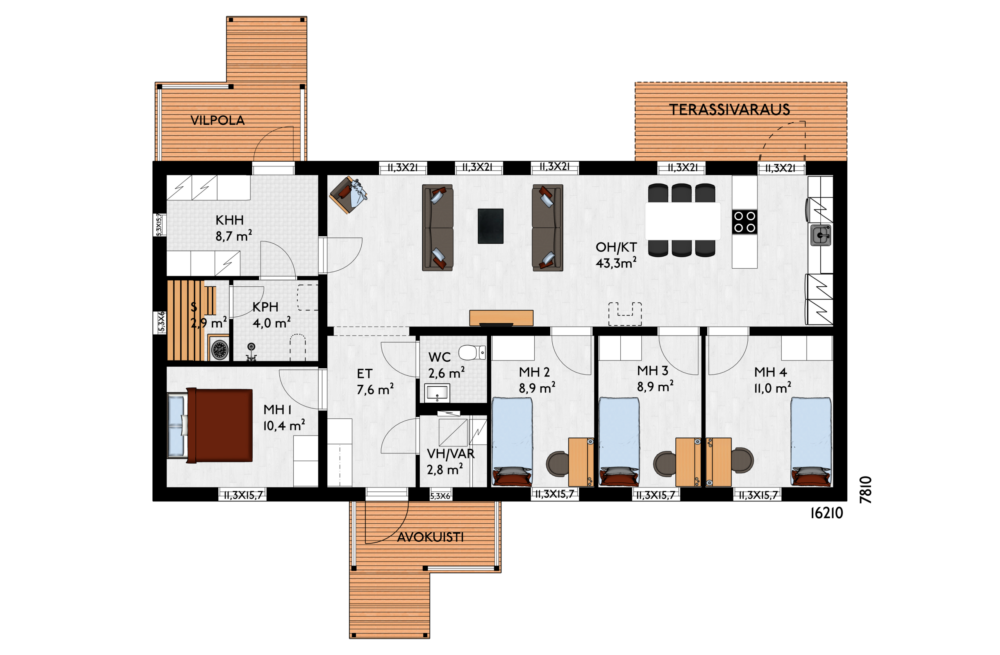 4 MH, OLOHUONE-KEITTIÖ, KHH, WC, KPH, S, VHH, ET