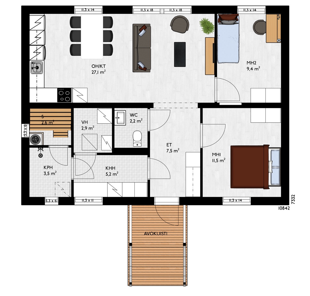 Entistä toimivampi versio alusta saakka mallistossamme olleesta Karunki-mallista. Tämä kahden makuuhuoneen omakotitalo on täydellinen esimerkki huippuunsa hiotusta tilankäytöstä.