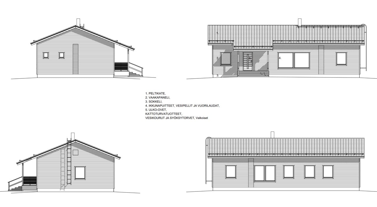 Koskenranta ES on viidellä makuuhuoneella varustettu puutalo, jossa valo pääsee kulkemaan kauniisti läpi talon olohuoneen ja keittiön kautta. Olohuone ja keittiö ovat rinnakkain talon keskellä.